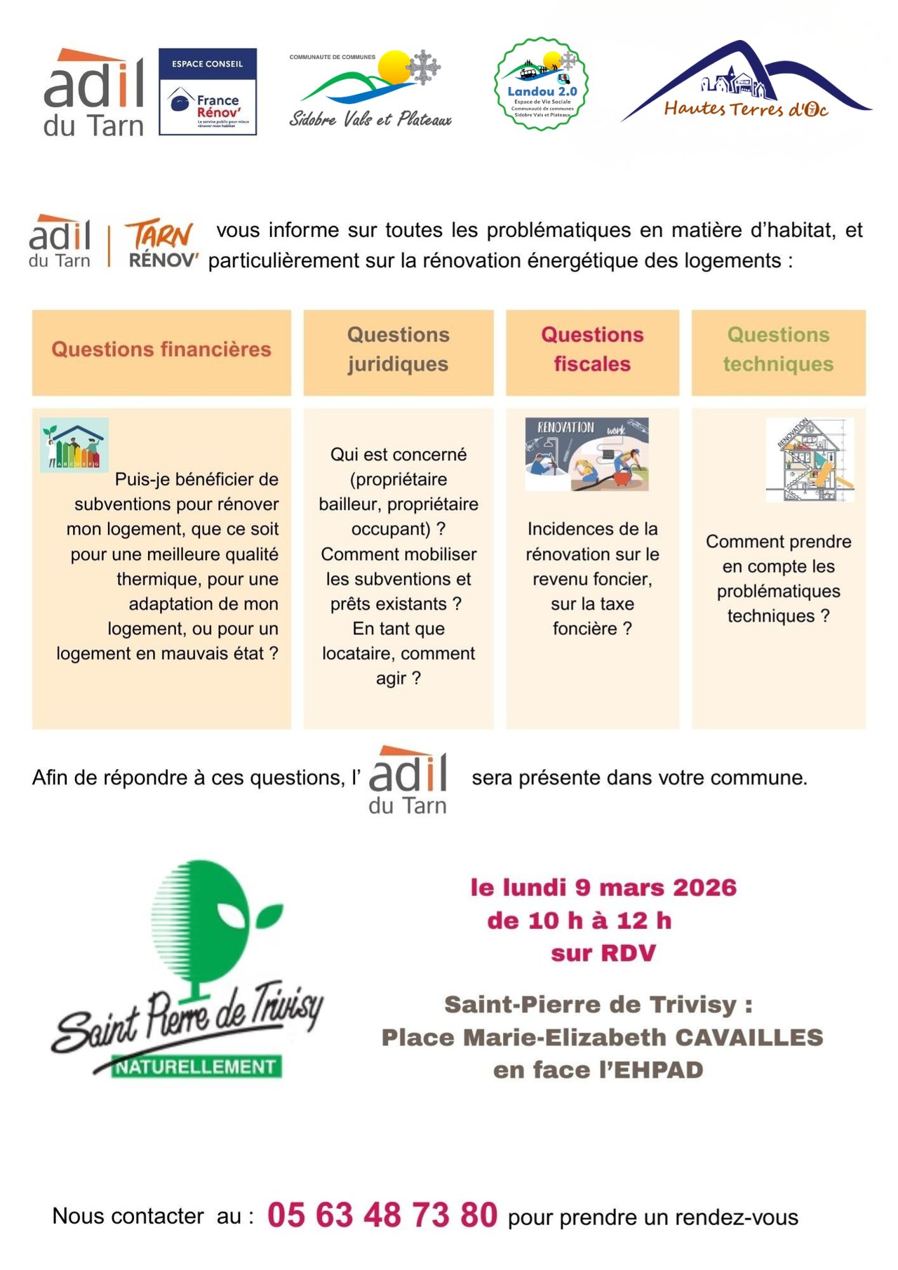 📞Rendez-vous OBIGATOIRE, uniquement sur le téléphone de l’ADIL : 0563487380